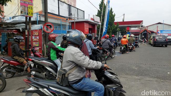 Pantauan detikJabar, di salah satu SPBU di Jalan Ibrahim Adjie, antrean terjadi di tempat pengisian BBM untuk kendaraan roda dua. Lebih dari 10 kendaraan sepeda motor mengantre di tempat pengisian BBM jenis Pertalite tersebut.