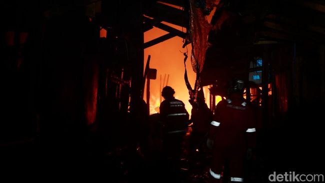 Warga lain, Eli (45) menambahkan, ia melihat api muncul ke atas pada pukul 18.30 WIB. Dia mengaku melihat api dari arah utara dan terbawa angin hingga merembet ke toko lain.