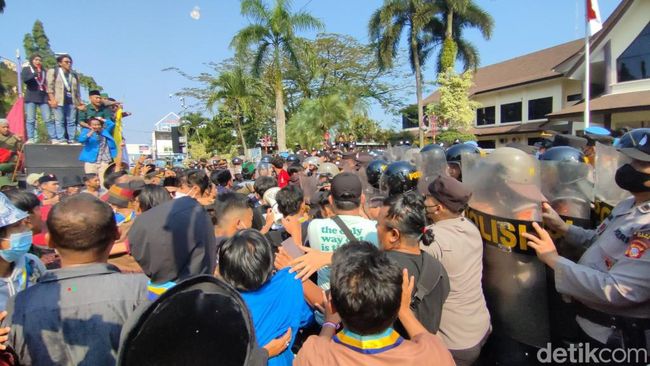 Aksi saling dorong ini terjadi tidak berlangsung lama. Kapolres Ciamis AKBP Tony Prasetyo Yudhangkoro turun langsung ke kerumunan untuk meredam aksi saling dorong tersebut.