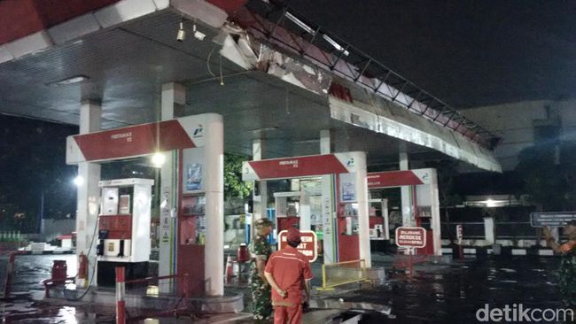 Pantauan detikJabar di lokasi kejadian, kerusakan terjadi di bagian atap SPBU. Reruntuhan atap SPBU ini masih berserakan. Aliran listrik di bagian yang mengalami kerusakan itu pun padam. Sejumlah petugas keamanan mengecek lokasi kejadian.
