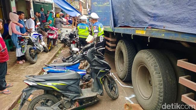 Truk itupun menabrak 14 sepeda motor yang terparkir di kawasan pasar. Laju truk pun terhenti usai beberapa motor terlindas bagian depan truk. Tidak ada korban jiwa dalam kecelakaan tersebut, namun satu orang mengalami luka ringan.
