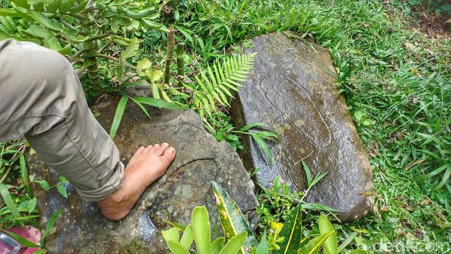 Asep mengatakan batu tersebut dibuat sebagai pijakan sebelum masuk ke dalam rumah. "Memang itu batu tapak, dibuatlah untuk masuk ke rumah. Jadi dipijak dulu sebelum ke rumah pakai batu ini. Mungkin lama kelamaan kan jadi mengikis nih, udah puluhan tahun dipakai, karena untuk dipakai masuk ke rumah menginjak batu itu," katanya.