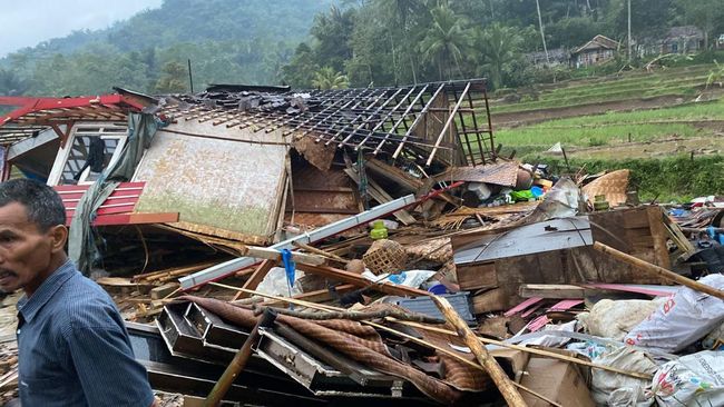 Angin puting beliung terjang satu kampung di Desa Cimenteng, Kecamatan Campaka, Kabupaten Cianjur, Rabu (7/9/2022) petang. Akibatnya empat rumah rata dengan tanah dan seratusan rumah lainnya rusak.
