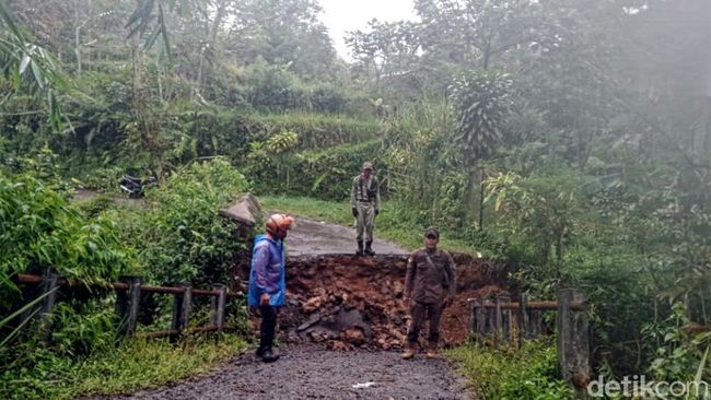"Jembatan poros desa penghubung antara Desa Mekarjaya dan Cihamerang itu mengalami longsor dan tidak bisa dilalui kendaraan dan pejalan kaki," kata Yusuf, petugas P2BK BPBD Kabupaten Sukabumi dalam keterangan yang diberikan kepada detikJabar.