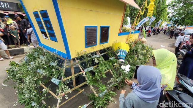 Karnaval kendaraan hias di Palabuhanratu, Kabupaten Sukabumi pada Minggu (11/9/2022) berlangsung meriah. Sejumlah dinas ramai-ramai mempercantik kendaraan mereka dengan berbagai bentuk hiasa berbahan bunga.