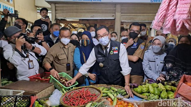 Gubernur Jawa Barat Ridwan Kamil mendatangi Pasar Tradisional Baltos, Kota Bandung untuk mengecek harga sejumlah kebutuhan pokok kepada pedagang. Setelah berkeliling, Ridwan Kamil memastikan tidak ada kenaikan harga bahan pokok secara signifikan imbas dari kenaikan BBM.
