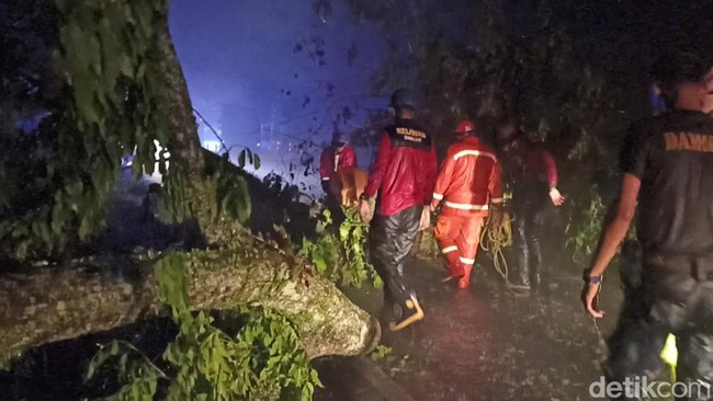 Informasi yang dihimpun detikJabar, pohon tumbang terjadi sekitar pukul 17.30 WIB. Pohon setinggi 20 meter tumbang usai hujan deras disertai angin kencang mengguyur sejak pukul 16.00 WIB.