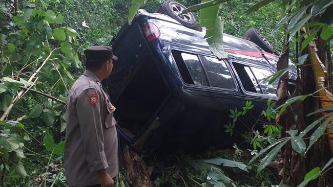 "Mobil berhenti jatuh dengan kondisi terbalik. Sopir selamat, sudah menjalani pengobatan di puskesmas terdekat," kata dia.