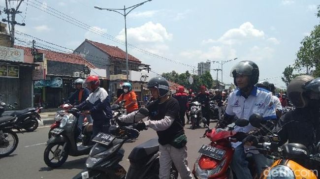 Massa aksi yang tergabung dalam Gerakan Masyarakat Majalengka (Geram) itu terpantau menuntun motornya dari kawasan GGM menuju depan gedung DPRD Majalengka. Mereka merupakan gabungan elemen masyarakat, mulai dari buruh, pedagang dan lainnya.
