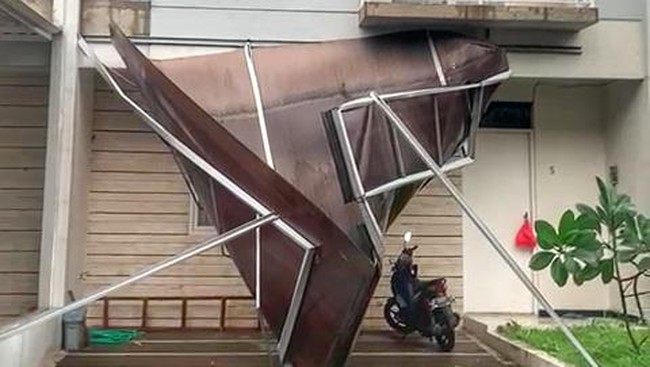 "Pasa hujan angin tersebut yg jelas warga pada panik. Soalnya si kanopi yang asbes-asbesnya itu pada terbang, takut nyabet juga kan," kata Ajay .