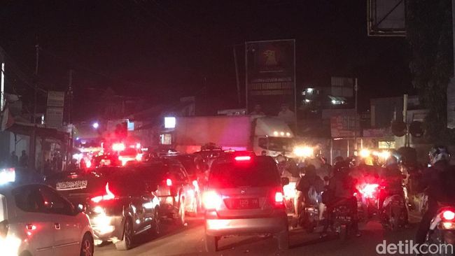 Pantauan detikJabar di lokasi sekitar pukul 19.40 WIB, antrean kendaraan sudah terjadi sekitat 2 kilometer dari arah Polsek Sukaraja hingga tugu bunderan Pasirhalang, Sukaraja. Antrean tersebut didominasi oleh kendaraan roda empat.