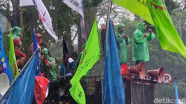 Pantauan detikJabar, Rabu (21/9/2022) siang, setelah massa driver ojek online, giliran massa buruh menyampaikan aspirasinya.