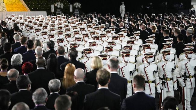 Pemerintah Jepang memperkirakan biaya pemakaman mantan Perdana Menteri Shinzo Abe ditaksir mencapai 1,66 miliar yen atau setara Rp 174 miliar (Kurs Rp 104).