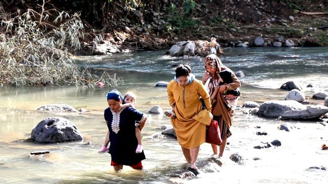 "Jembatan nggak ada ya terpaksa langsung turun ke sungai, kadang waswas takut tiba-tiba sungai meluap. Tapi ya mau bagaimana lagi, tidak ada jalan lain," kata Yeyen, warga di sekitar lokasi kepada awak media, Selasa (27/9/2022).