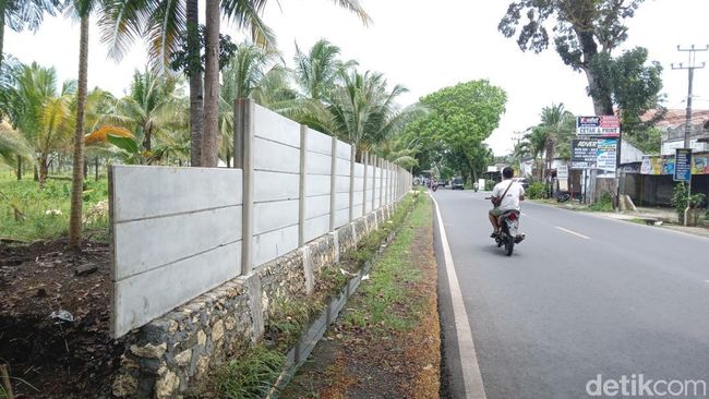 Pembangunan benteng pembatas di kawasan Panca Jaya Makmur Bersama (PMB) dinilai terlalu dekat dengan Jalan Raya Pangandaran, Desa Wonoharjo, Kecamatan Pangandaran, Kabupaten Pangandaran.