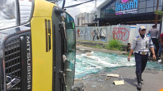 Arif menduga, saat truk hendak berbelok muatan kaca mengalami pergeseran sehingga membuat mobil oleng.
