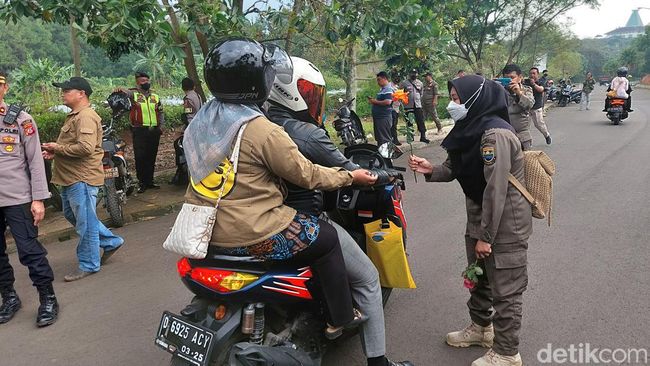 Pada Kamis (6/10/2022), ratusan personel Satpol PP KBB itu membagikan bunga beragam warna pada pengendara yang melintasi gerbang masuk 2 ke kantor Pemda KBB.