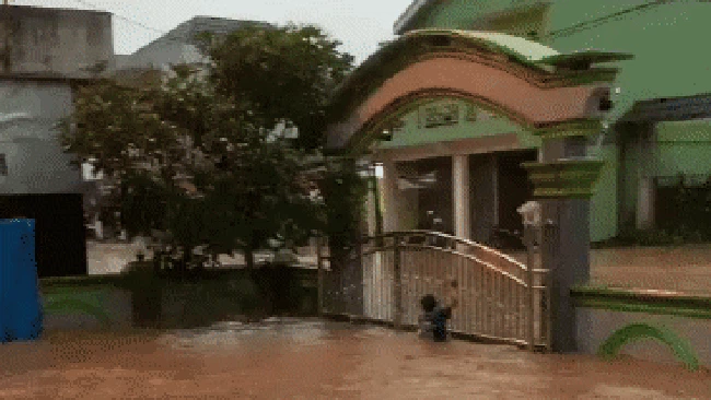 Sebuah video beredar memperlihatkan kondisi masjid tergenang air, sejumlah warga terlihat sibuk membongkar saluran air yang diduga mampat. "Kalau itu (kejadiannya) di masjid itu di depan jalan raya, kalau saya di belakangnya tepat di pinggir sungainya," kata Entang melanjutkan.