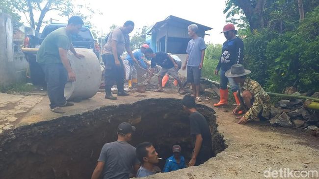 "Tapi kata Kapolsek itu berisiko. Jadi perbaikannya rencana gorong-gorong diganti, lalu disemen. Materialnya ada dari polisi, ada dari warga. Swadaya. Kalau menunggu dari PU lama," kata Amas. Setiap hari setidaknya ada 10 warga yang ikut membantu proses perbaikan. TNI dan Polri juga turut hadir membantu.