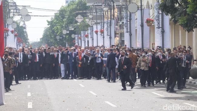 Pantauan detikJabar, sebelum memasuki Gedung Merdeka, para delegasi negara Islam ini mengikuti historical walk di Jalan Asia Afrika. Gubernur Jawa Barat Ridwan Kamil terlihat berada di tengah-tengah para delegasi itu.