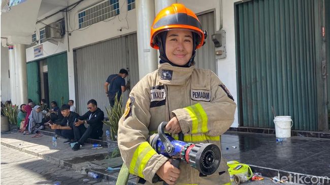 Nozel yang beratnya lebih dari satu kilogram, ditambah tekanan air yang sangat kuat dipegang perempuan berumur 38 tahun itu untuk memadamkan api. Tidak sendiri, selang berukuran 2,5 Inci itu dipegang Ratika dan petugas lainnya.
