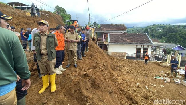 Sekretaris Daerah Ade Suryaman melakukan tinjauan lokasi longsor di Caringin. Dia meminta agar BPBD melakukan kajian teknis dan menegur Kepala Desa untuk lebih memperhatikan pembangunan warganya.