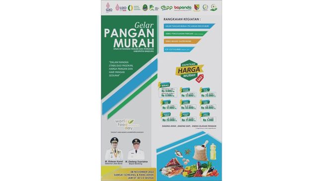 Dari informasi yang diterima detikJabar, Senin (7/11/2022), gelar pangan murah ini digelar, Selasa (8/11/2022) besok dibuka dari mulai Pukul 07.30 WIB hingga selesai.