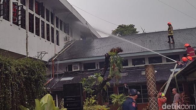 Hujan yang mengguyur Balai Kota Bandung juga belum mampu memadamkan api yang berkobar. Sementara, petugas Diskar PB Kota Bandung sudah tiba di lokasi sekitar pukul 11.00 WIB.