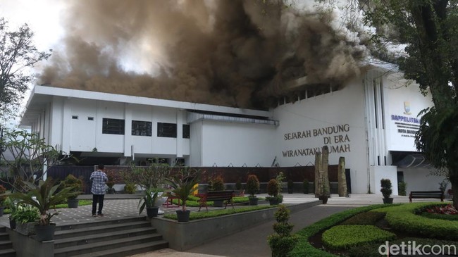 Sudah lebih dari dua jam api membakar Gedung Bapelitbang Kota Bandung yang ada di area Balai Kota Bandung. Petugas Diskar PB Kota Bandung masih berjibaku memadamkan api yang melahap habis gedung tersebut.
