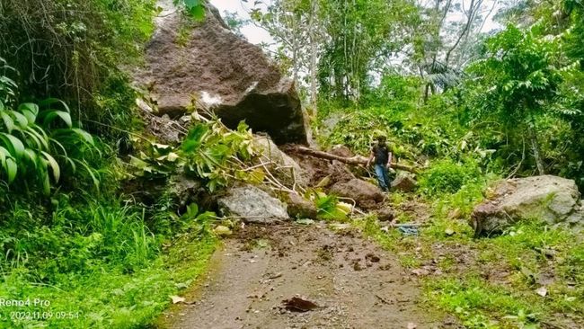 "Tiba-tiba terdengar dari kejauhan suara gemuruh seperti sesuatu roboh. Warga kemudian penasaran dan mendatangi asal suara tersebut. Ternyata ada tanah longsor dan batu besar sudah menutup akses jalan desa. Secara tiba-tiba," ujar Suharno saat dihubungi detikJabar, Rabu (9/11/2022).