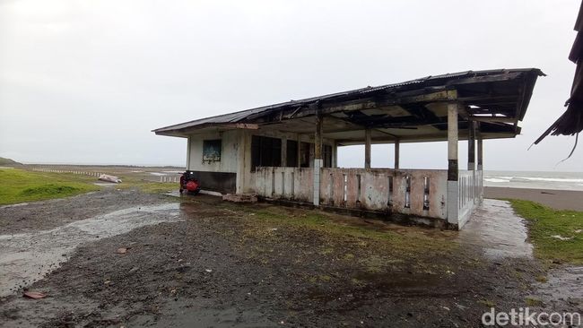 Kemudian bangunan tempat pelelangan juga sudah rusak. Bagian atap bangunan ini sudah ambruk. Sementara di bibir pantai sebuah perahu yang terbelah ditinggalkan nelayan, seakan melengkapi kondisi memprihatinkan. Kemudian di bibir pantai tumpukan batu yang merupakan pemecah ombak atau breakwater sudah nyaris tenggelam.