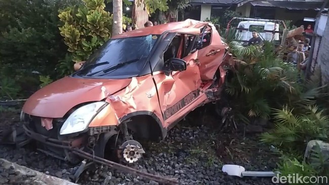 Mobil itu diseruduk kereta api hingga terpental sejauh 40 meter. Benturan keras membangunkan warga. "Suara benturan keras sekali, belum lagi suara klakson kereta. Warga yang posisinya jauh juga mendengar, apalagi saya ini di depan rel," kata Deni, warga sekitar lokasi kejadian.