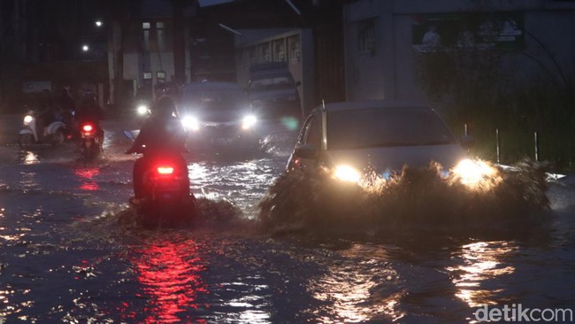 Sejumlah kendaraan didominasi sepeda motor mengalami mogok akibat genangan banjir. Tak hanya sepeda motor, kendaraan roda empat juga alami mati mesin saat mencoba menerobos genangan banjir.