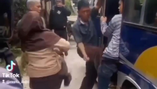 Tak terima dituding seperti itu, pria paruh baya yang menjadi sasaran amukan siswi ini menyangkalnya. Pria tersebut mencoba bertahan sembari memegang mobil elf, sementara siswi yang mengejarnya ini berulang kali melancarkan tendangan sembari bersumpah telah menjadi korban pelecehan.