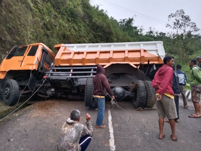 Sesampainya di lokasi, di area jalan menurun curam dan panjang sekitar 4 sampai 5 kilometer, kata Masrokan, diduga truk mengalami rem blong. Alhasil, truk yang dikendarai Sudarsa (62) itu hilang kendali.