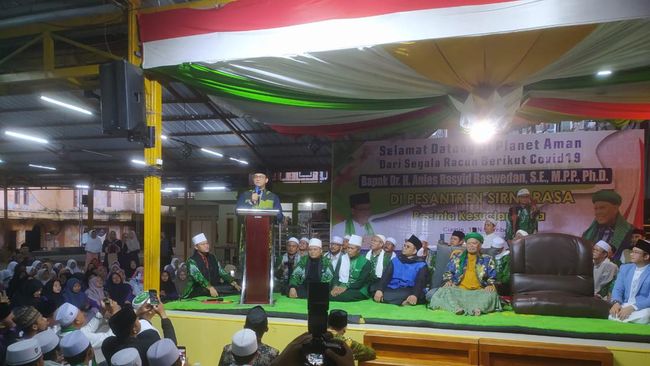 "Selama kami mengembang tugas di Jakarta, Abah Aos dan santri Sirnarasa turut mendoakan perjalanan kami," ujar Anies Baswedan. Mantan Gubernur DKI ini memberikan sambutan sesaat setelah tiba di lokasi pesantren.