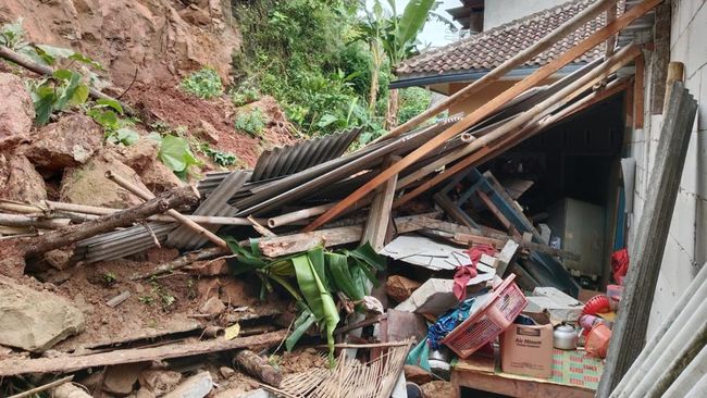 "Tanah longsor terjadi sekitar pukul 06.00 WIB menimpa sebagian rumah warga bagian belakang," kata Kusnadi kepada detikJabar, Jumat (25/11/2022).