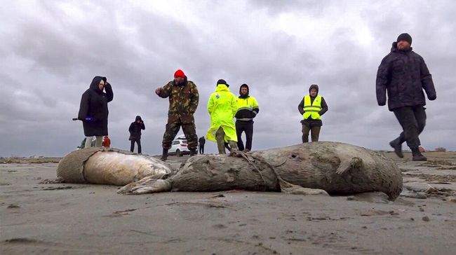 Sekitar 2.500 ekor anjing laut kaspia mati massal dan bangkainya memenuhi pantai Laut Kaspia di Rusia. Ilmuwan masih menyelidiki penyebab kematian anjing laut jenis langka tersebut.