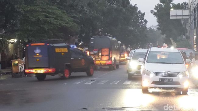 Pantauan detikJabar, Rabu (7/12/2022) rombongan mobil Gegana Polda Jabar keluar dari wilayah Mapolsek Astanaanyar sekitar Pukul 17.50 WIB.
