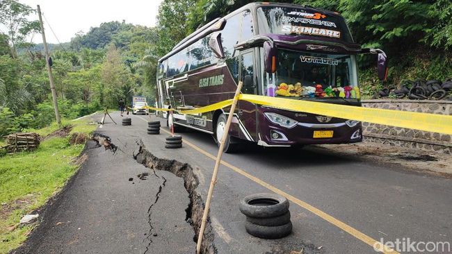 Pantauan detikJabar Sabtu (10/12/2022), setengah jalan tersebut ambles dengan panjang sekitar 15 meter dengan kedalaman sekitar 50 sentimeter. Lokasinya cukup rawan mengingat dekat dengan tikungan yang tidak terlihat pengendara dari kedua arah.