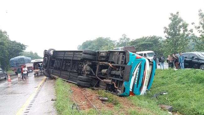 "Diduga kendaraan mengalami rem blong dan pengemudi kurang antisipasi tidak menjaga jarak aman sehingga kendaraan oleng ke kanan menabrak pembatas jalan kemudian terperosok ke dalam median tengah," ujar Endang saat dihubungi detikJabar.