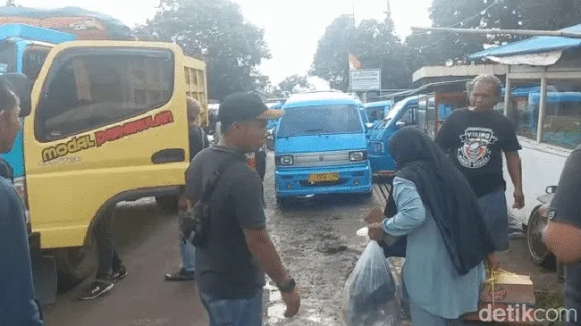 "Angkutan jalur 19, jalan rusak sama kendaraan berat SCG mau unjuk rasa sampaikan aspirasi agar segera diperbaiki kondisi jalan rusak sudah dua bulan. Penumpang terhambat perjalanan, kalau kerugian materiel kerusakan mobil angkot," kata Haryono, salah seorang sopir angkot kepada wartawan, Senin (12/12/2022).