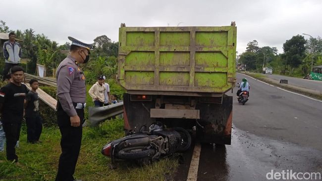 Akibatnya, SW yang mengendarai sepeda motor dengan kecepatan tinggi tak dapat menahan kendaraan saat melihat ada Dump Truck yang terparkir di bahu jalan.