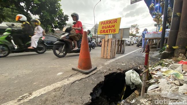 Usu (54) mengatakan, jalan amblas itu sudah terjadi sejak lama. Menurutnya, hal itu terjadi karena derasnya air hujan dan rapuhnya kondisi di dalam jalan.