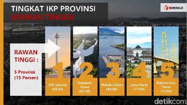 Bawaslu RI merilis Indeks Kerawanan Pemilu (IKP) menjelang pemilihan 2024. Dalam indeks tersebut, ada 9 daerah di Jawa Barat yang masuk dalam kategori kerawanan paling tinggi berdasarkan penilaian indeks kerawanan kabupaten/kota se-Indonesia.