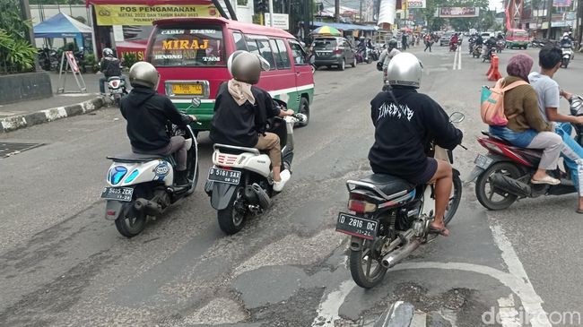 Sejumlah jalan di Kota Bandung rusak. Kondisinya berlubang dan bergelombang. Pantauan detikJabar, Rabu (28/12/2022), jalan rusak tersebar di beberapa titik, seperti di Jalan Ibrahim Adjie yang mengarah ke lampu lalu lintas Jalan Soekarno Hatta atau perempatan Samsat. Persis sebelum lampu lalu lintas ada lubang jalan.