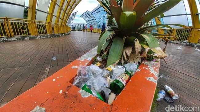 Dari pantauan detikJabar, terdapat dua tempat sampah yang disediakan di Skywalk Sabilulungan, namun telah penuh sehingga tak sanggup menampung sampah dari pengunjung. Sampah juga terlihat menumpuk di sejumlah titik seperti di taman. Bahkan ada sampah bekas botol minuman keras.