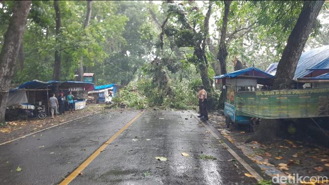 "Pohon tumbang ini terjadi akibat hujan deras dan angin yang turun siang ini petugas kepolisian dari Pos pengamanan Nataru Cikakak Polres Sukabumi masih melakukan evakuasi, situasi masih hujan lebat," kata Kompol Oki Eka Kartikayana, perwira pengawas Ops Lilin Lodaya 2022 Polres Sukabumi, Sabtu (31/12/2022).