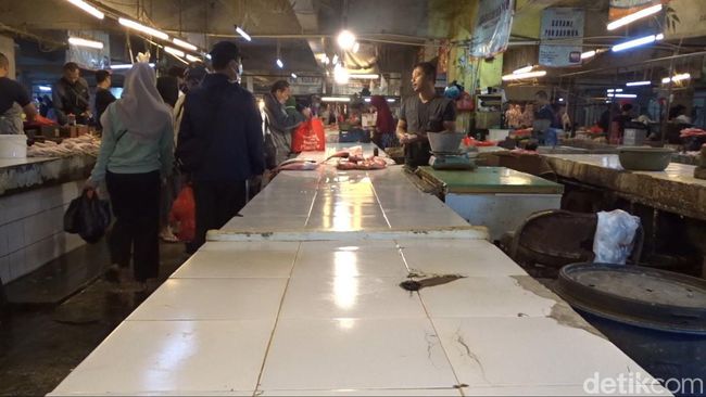 Pantauan detikJabar, dari lima pedagang ikan laut di Pasar Kosambi Bandung, hanya satu kios yang berjualan. Empat pedagang lainnya tak berjualan karena stok terbatas dan habis.