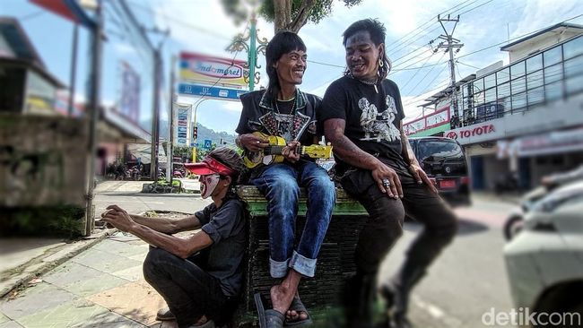 Ia setengah berlari menuju lampu lalu lintas di perempatan di Jalan Siliwangi, Palabuhanratu, Kabupaten Sukabumi saat menyala merah. Suaranya lantang beriringan dengan tangannya yang lihai memetik gitar yang mengeluarkan irama khas anak punk.